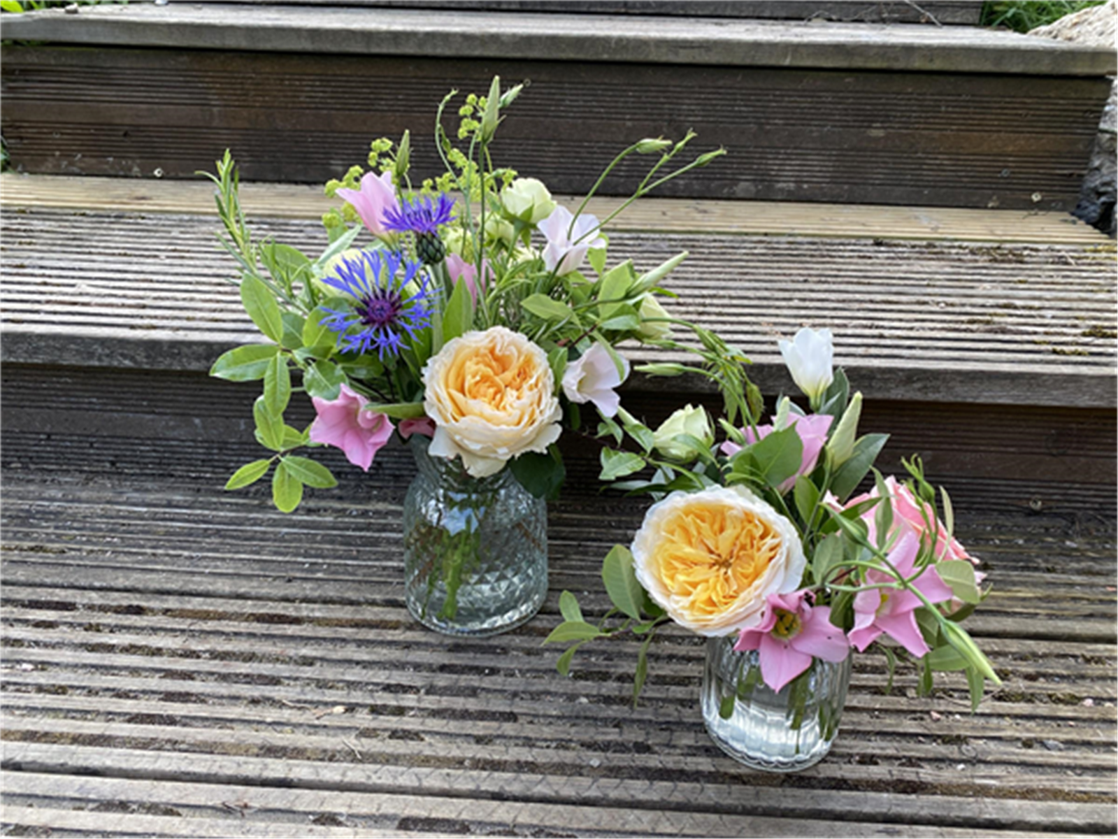 3 Hand Tied Bridesmaid Bouquets Natural bouquets of blousy seasonal blooms to compliment the bridal bouquet. Crafted with care and finised with ribbons to tone.